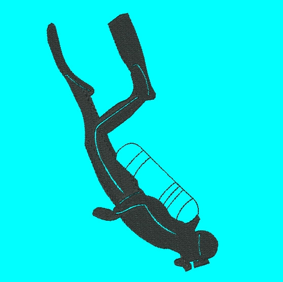 Video-Aufnahme wie die Stickdatei ‘ Taucher schwarz ´ gestickt wird.